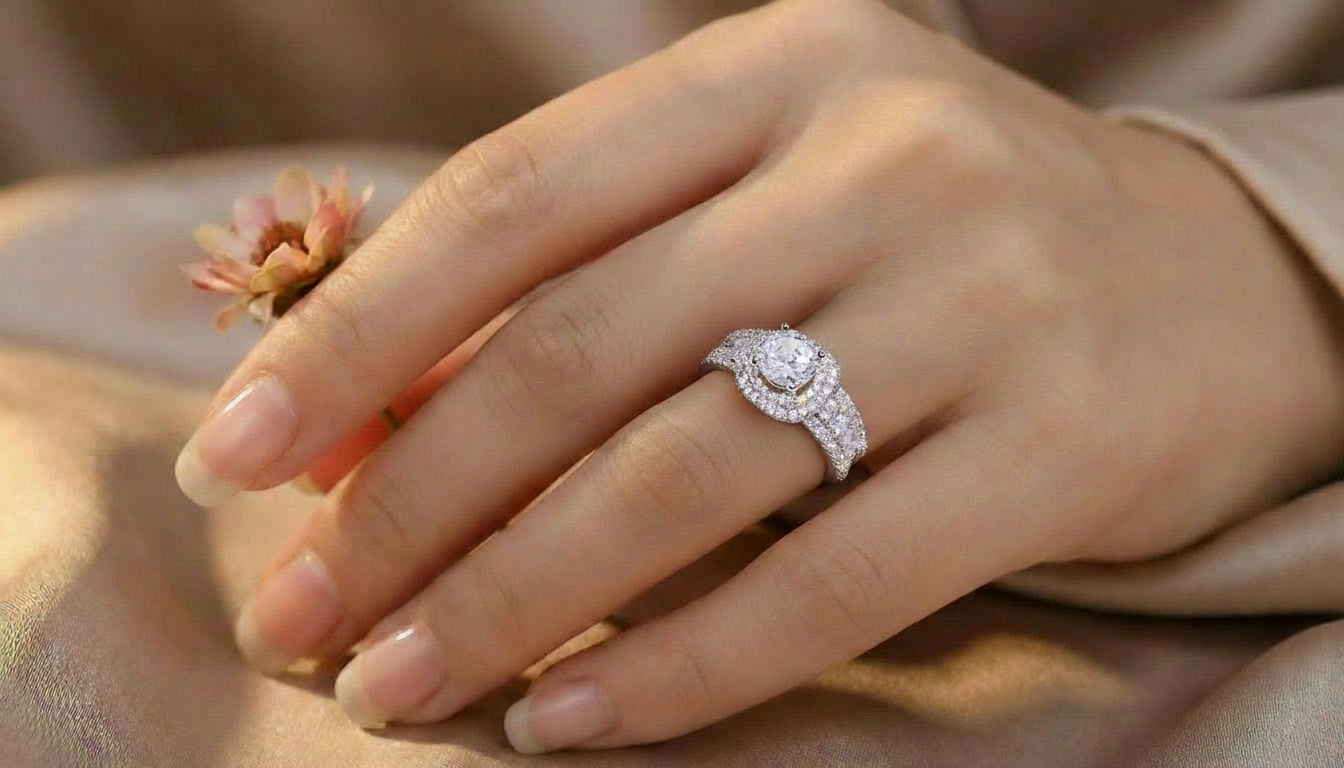 Made with premium-quality metal and adorned with a flawless clear zircon, it reflects light beautifully from every angle ✨ The high-polish finish gives it a luxurious glow, while the intricate setting adds depth and sophistication.