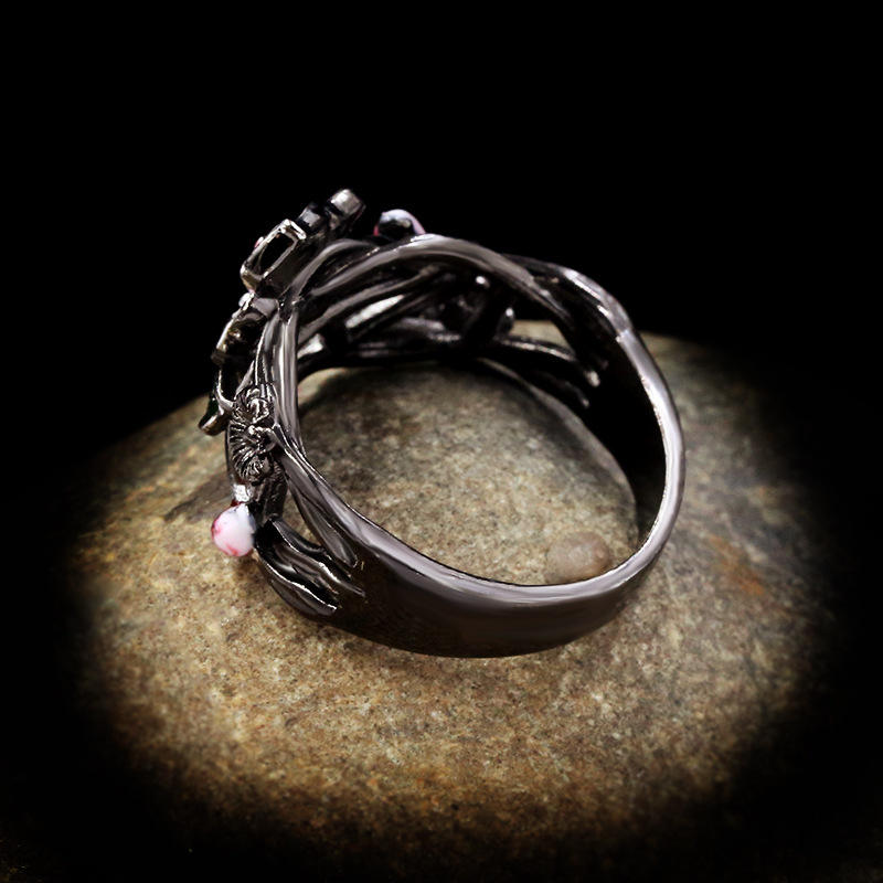 The Crimson Bloom Heirloom Ring is crafted with a glowing red 3A zircon set at the heart of an artistic flower motif, accented by hand-applied enamel details. Its antique goldâplated finish adds a classic, heritage-inspired depth, making the ring feel both romantic and refined ✨