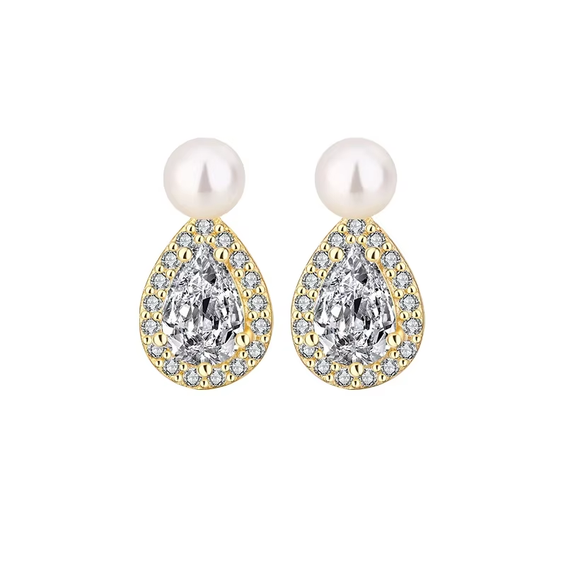 At the top sits a natural freshwater pearl, prized for its soft glow and timeless elegance. Below it, a teardrop-shaped zircon stone, meticulously set using micro-insert technology, is surrounded by shimmering zircon accents that reflect light beautifully from every angle.