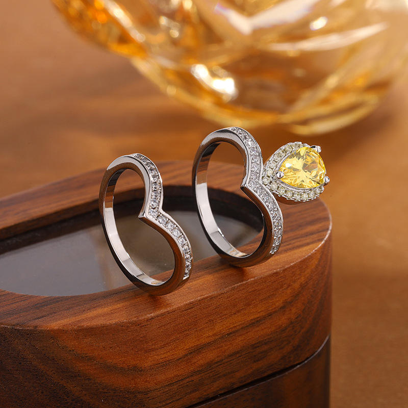 A stunning teardrop cluster ring set crafted in platinum-plated brass, featuring sparkling zircon stones and a modern V-shaped silhouette—perfect for engagements, anniversaries, weddings, or elegant gifting.