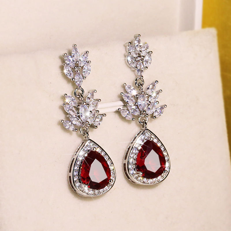 Aurora Teardrop Sparkle Earrings – Platinum Plated Red Geometric Zircon Drops