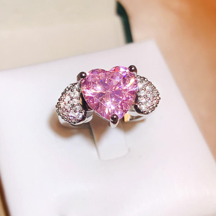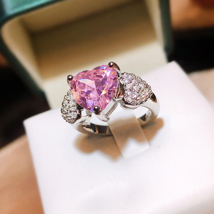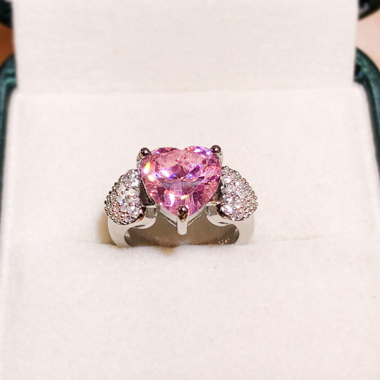 A stunning heart-shaped pink zircon ring crafted with a platinum-plated finish and elegant claw setting. Designed to sparkle with every movement, this trendy women’s ring is perfect for weddings, engagements, anniversaries, and meaningful gifts.