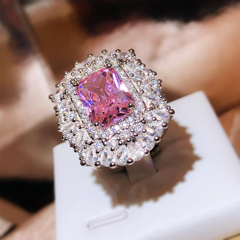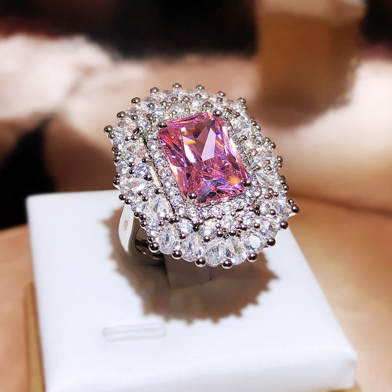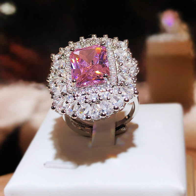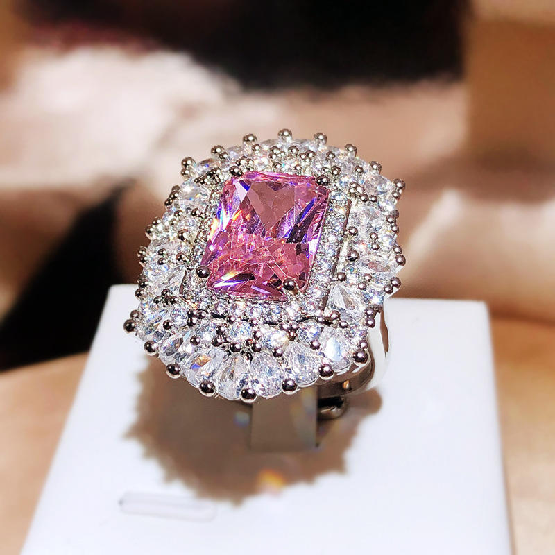 This statement ring features a striking geometric-cut pink zircon that glows with vibrant charm, beautifully surrounded by a radiant halo of clear stones. Crafted from premium alloy and finished with a sleek, high-polish plating, it delivers a luxe look that feels just as good as it looks ✨