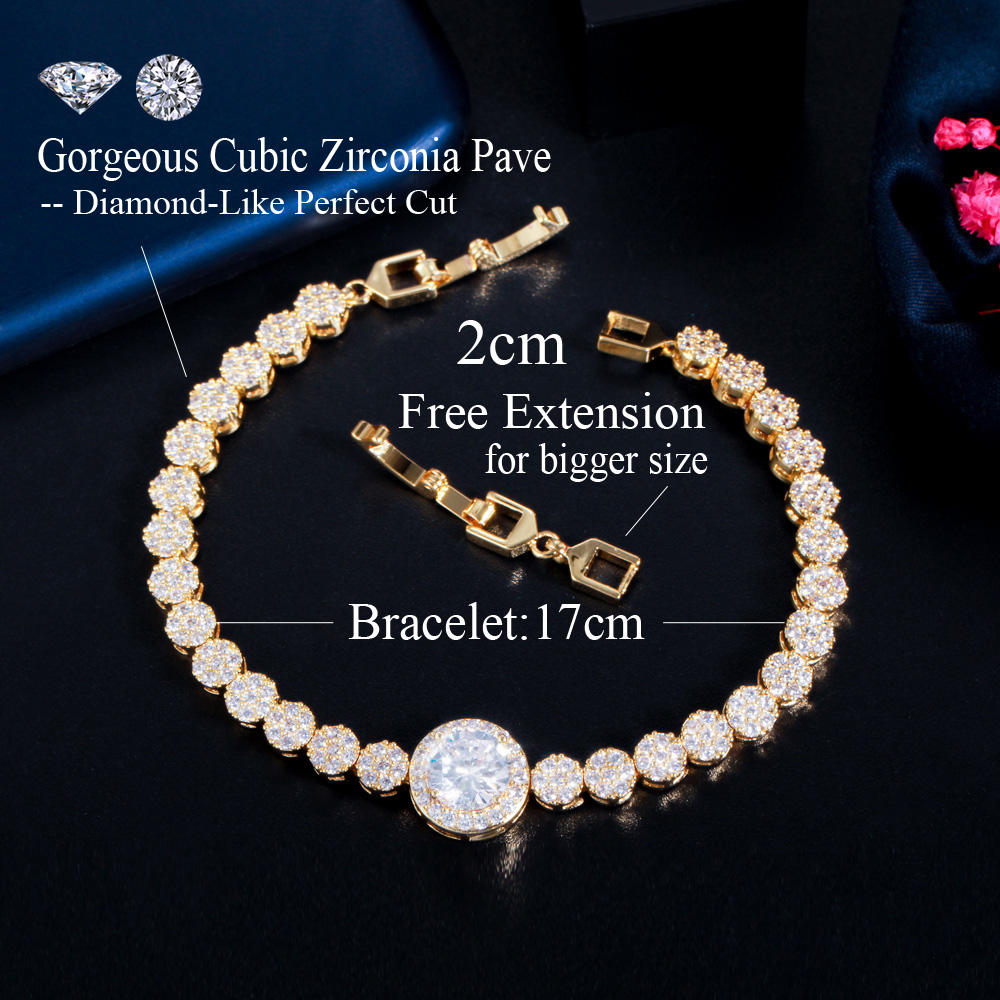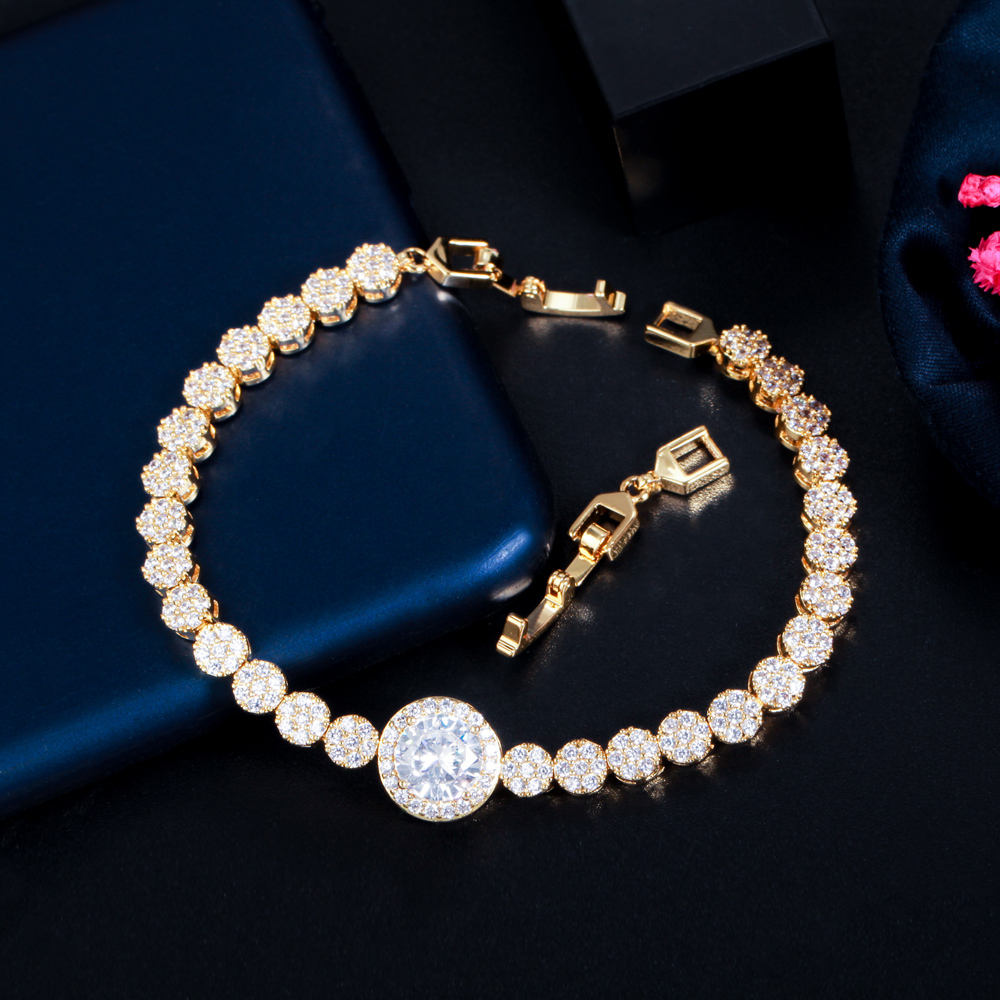 Expertly crafted from high-quality brass and finished with rich 18K gold plating, this bracelet features dazzling round brilliant cut cubic zirconia stones that reflect light from every angle. The secure claw setting enhances brilliance while ensuring durability for long-lasting wear.