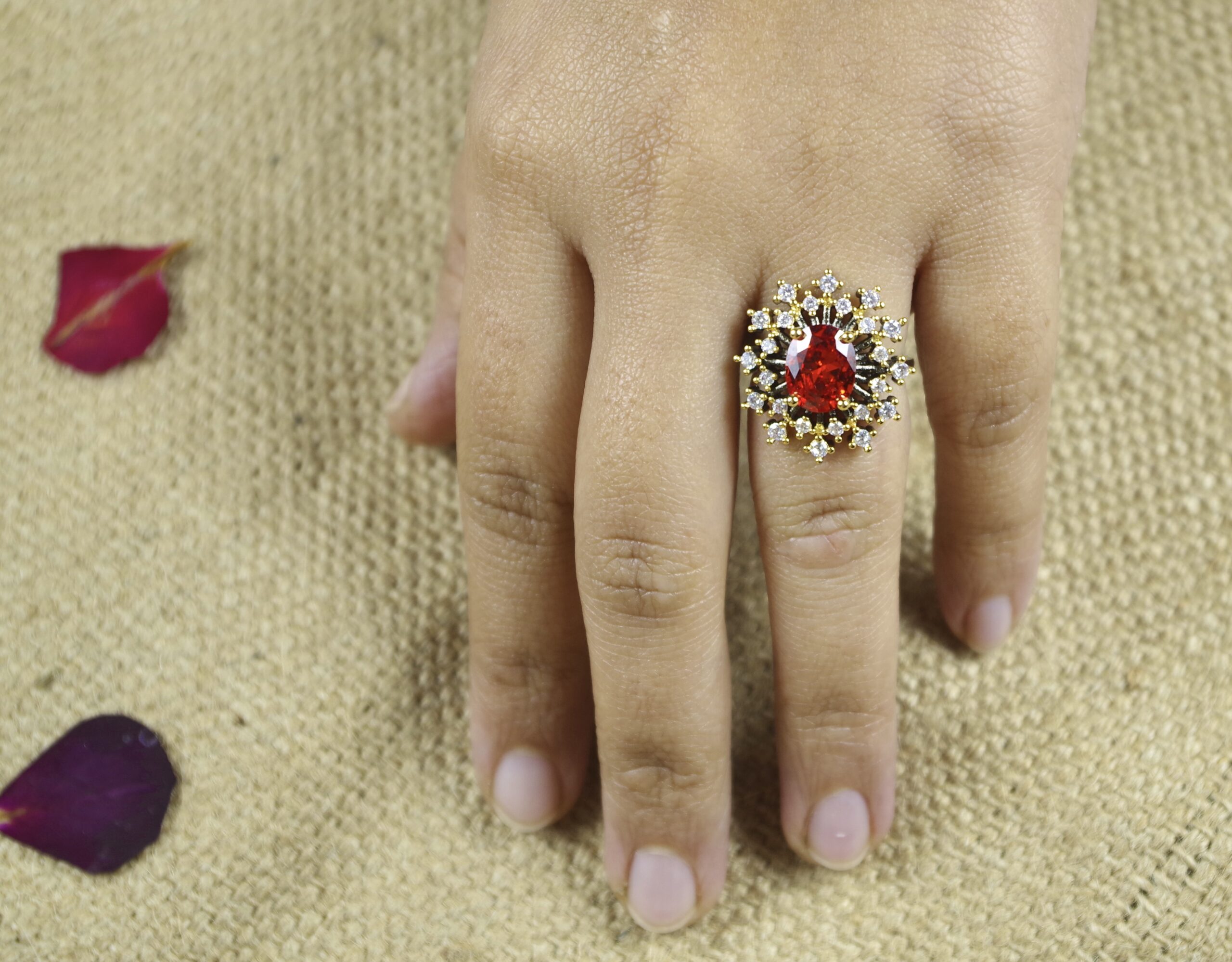 Illuminate your look with the Crimson Aurora Cluster Ring, a masterpiece designed to command attention with its bold radiance. At the heart of this ring sits a vivid red zircon, encircled by shimmering stones that create a breathtaking burst of light ✨ — making it a true statement of modern elegance.