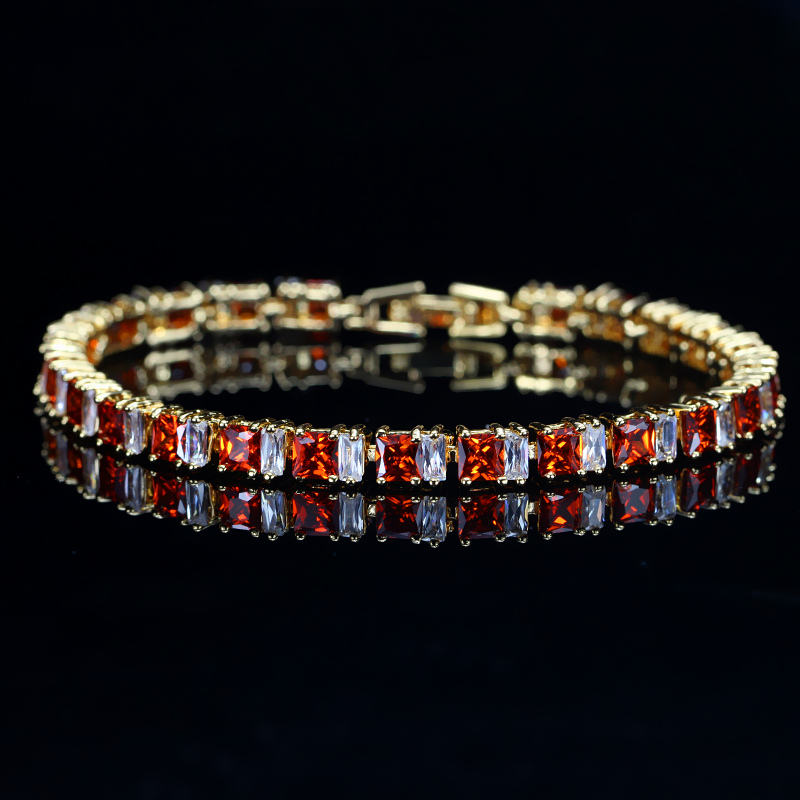 Made from high-quality brass with premium 18K gold plating, the bracelet delivers a rich yellow-gold shine while maintaining durability for regular wear. Each stone is secured using claw setting technology, ensuring lasting hold and maximum brilliance.